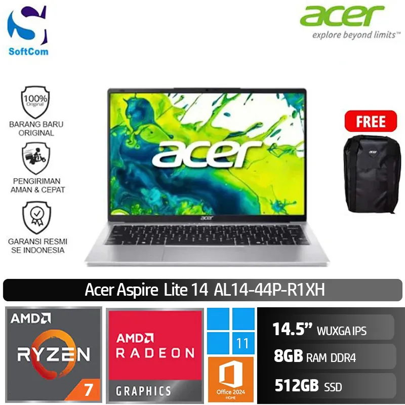 Acer Aspire Lite AL14-44P-R1XH/Ryzen 7-7730U/8GB/512GB SSD/14.5″ WUXGA IPS/Win 11 Home+OHM 2024+M365/Silver