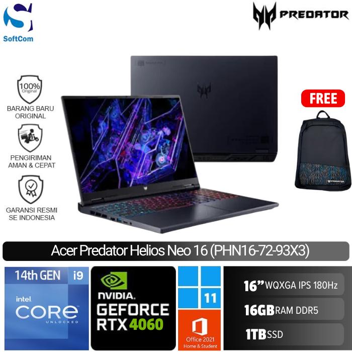 Acer Predator Helios Neo PHN16-72-93X3/Intel Core i9-14900HX/16GB/1TB SSD/GeForce RTX 4060 8GB/16″ WQXGA 180Hz/Win 11 Home + OHM 2024 + M365-Black