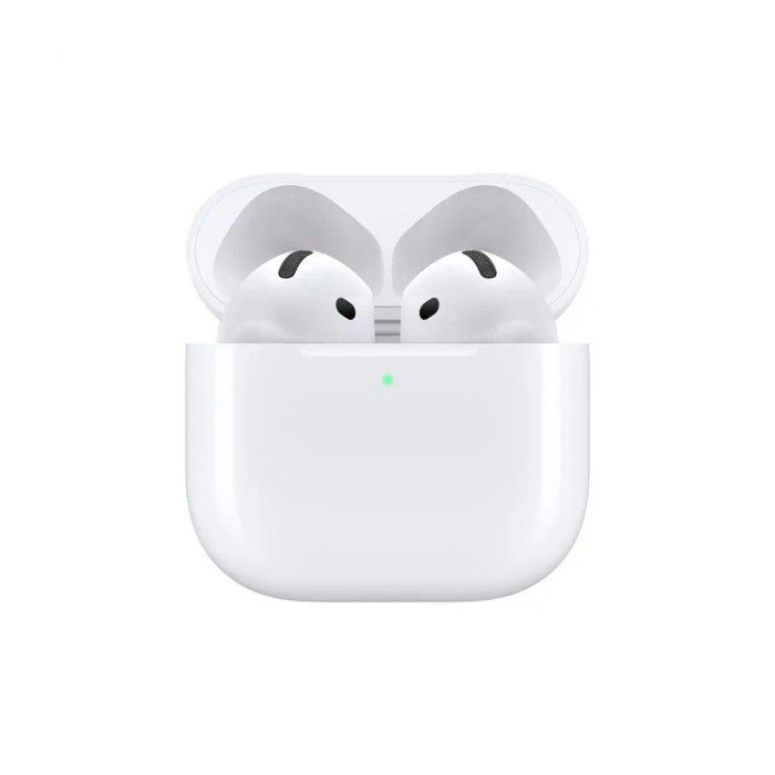 - AirPods 4 didesain ulang untuk kenyamanan luar biasa sepanjang hari dan stabilitas yang lebih baik. Dengan kontur yang disempurnakan, batang yang lebih pendek, dan kontrol tekan cepat untuk musik atau panggilan.