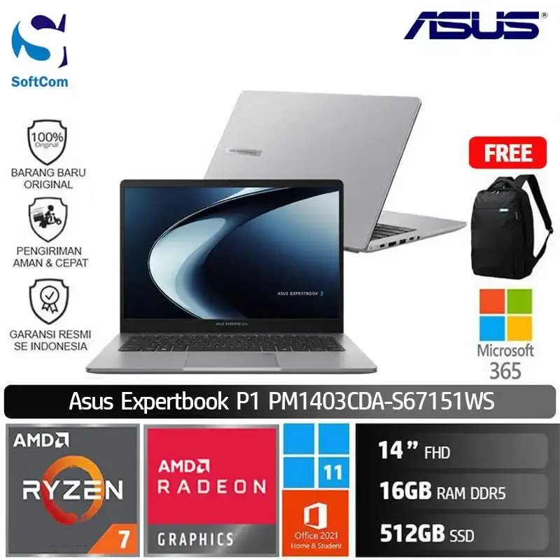 Asus Expertbook P1 PM1403CDA-S67151WS /Ryzen 7-170/16GB/512GB SSD/14″ FHD/Win 11 Home+OHM 2024 +M365/Misty Grey