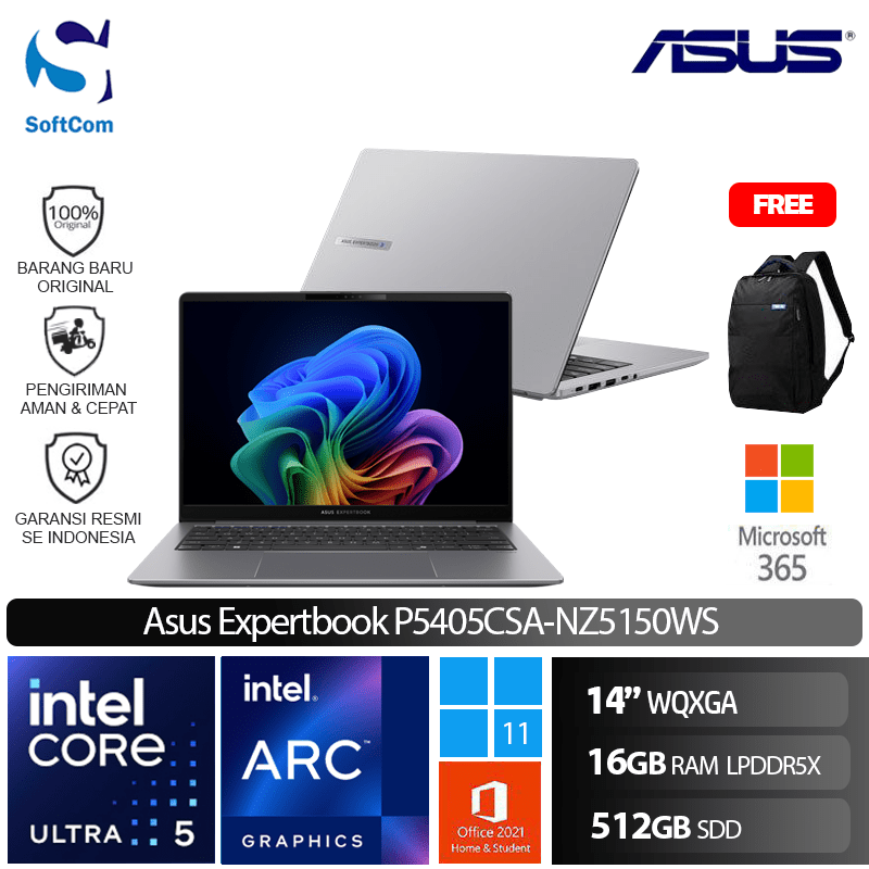 Asus Expertbook P5 P5405CSA-NZ5150WS/Intel Core Ultra5-226V/16GB/512GB SSD/14″WQXGA /Win 11 Home+OHS 2021+M365