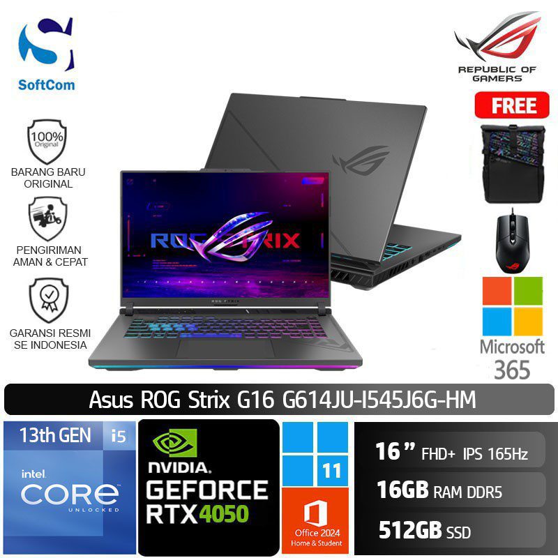Asus ROG Strix G16 G614JU-I545J6G-HM/Core i5-13540HX/16GB/512GB SSD/GeForce RTX 4050 6GB/16″ FHD+ IPS 165Hz/Win 11 Home+OHS 2021/Eclipse Gray