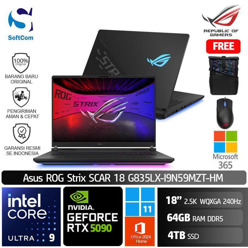 Asus ROG Strix Scar 18 G835LX-I9N59MZT-HM /Intel Core Ultra 9-275HX/64GB/4TB SSD/GeForce RTX 5090 24GB/18″ 2.5K 240Hz/Win 11 Home+OHM 2024+M365/Off Black