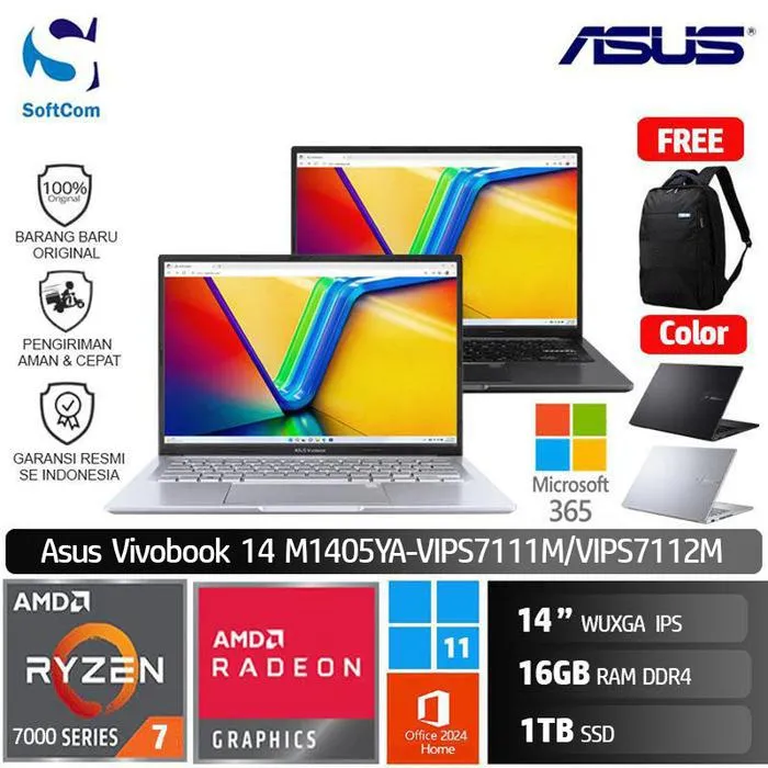 Asus Vivobook 14 M1405YA VIPS7111M VIPS7112M/Ryzen 7-7730U/16GB/1TB SSD/14″ WUXGA/Win 11 Home + OHM 2024 + M365