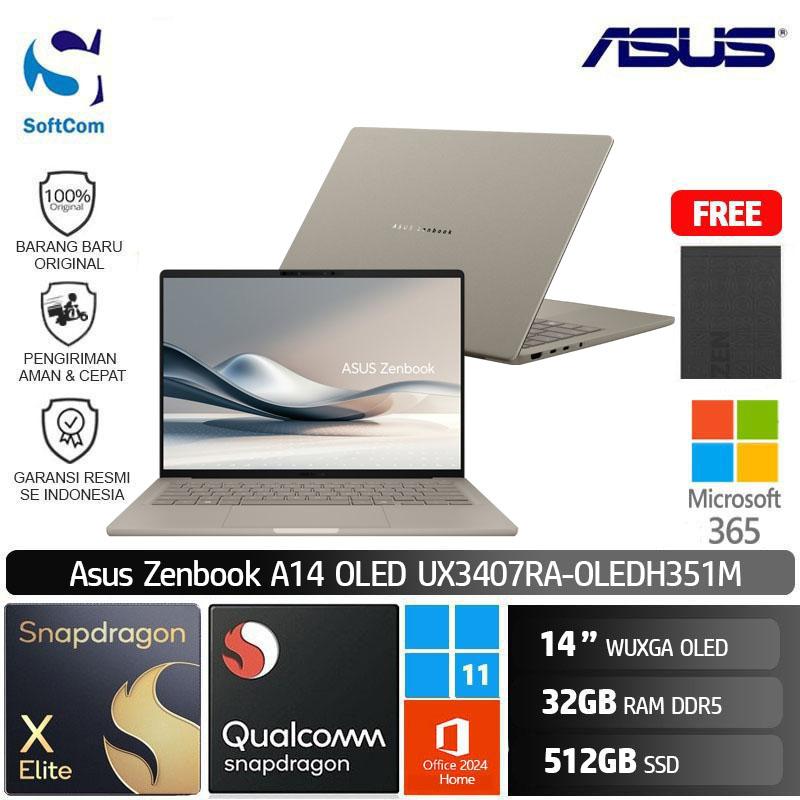 Asus Zenbook A14 UX3407RA OLEDH351M/Snapdragon X1 Elite/32GB/512GB SSD/14″ WUXGA OLED/Win 11 Home + OHM 2024 + M365/Zabriskie Beige