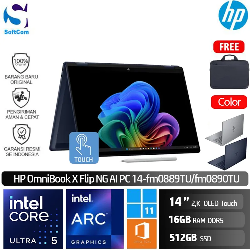 HP OmniBook X Flip Next Gen AI 14-fm0889TU fm0890TU /Ultra 5-226V/16GB/512GB SSD/14″ 2K OLED Touch/Win 11 Home+OHM 2024+M365