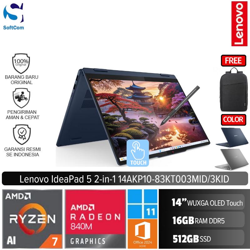 ![Lenovo IdeaPad 5 2-in-1 14AKP10 3KID 3MID/Ryzen AI 7 350/16GB/512GB SSD/14" WUXGA Touch/Win 11 Home + OHM 2024 + M365 [83KT003KID| 83KT003MID] - Image 2](https://testingfahmi.web.id/wp-content/uploads/2025/06/7414f6a290ea4d9794c0b87c4e48123b.jpeg)