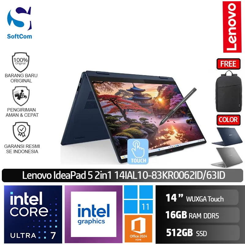 ![Lenovo IdeaPad 5 2-in-1 14IAL10 62ID 63ID/Intel Core Ultra 7-255U/16GB/512GB SSD/14" WUXGA IPS Touch/Win 11 Home+OHM 2024+M365 [ 83KR0062ID | 83KR0063ID ] - Image 5](https://testingfahmi.web.id/wp-content/uploads/2025/06/ec35b63904eb423780882db8261633da.jpeg)
