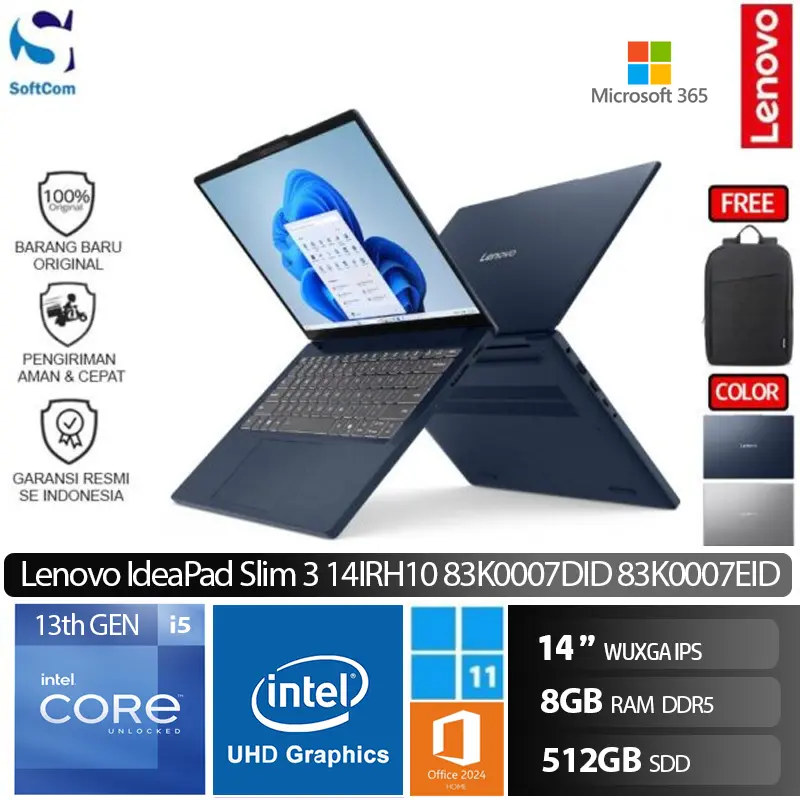 ![Lenovo IdeaPad Slim 3 14IRH10 7DID 7EID/Intel Core i5-13420H/8GB/512GB SSD/14" WUXGA IPS/Win 11 Home+OHM 2024+M365 [83K0007DID | 83K0007EID] - Image 2](https://testingfahmi.web.id/wp-content/uploads/2025/04/4-10.jpg)