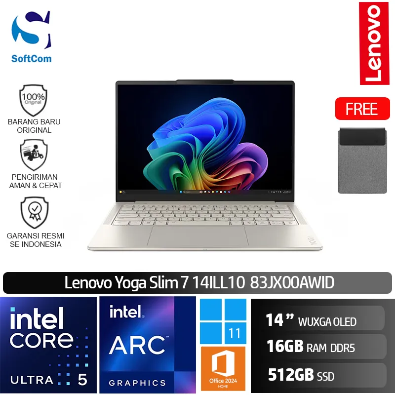 Lenovo Yoga Slim 7 14ILL10 83JX00AWID /Intel Core Ultra 5-226V/16GB/512B SSD/14″ WUXGA OLED/Win 11 Home + OHM 2024 + M365/Seashell