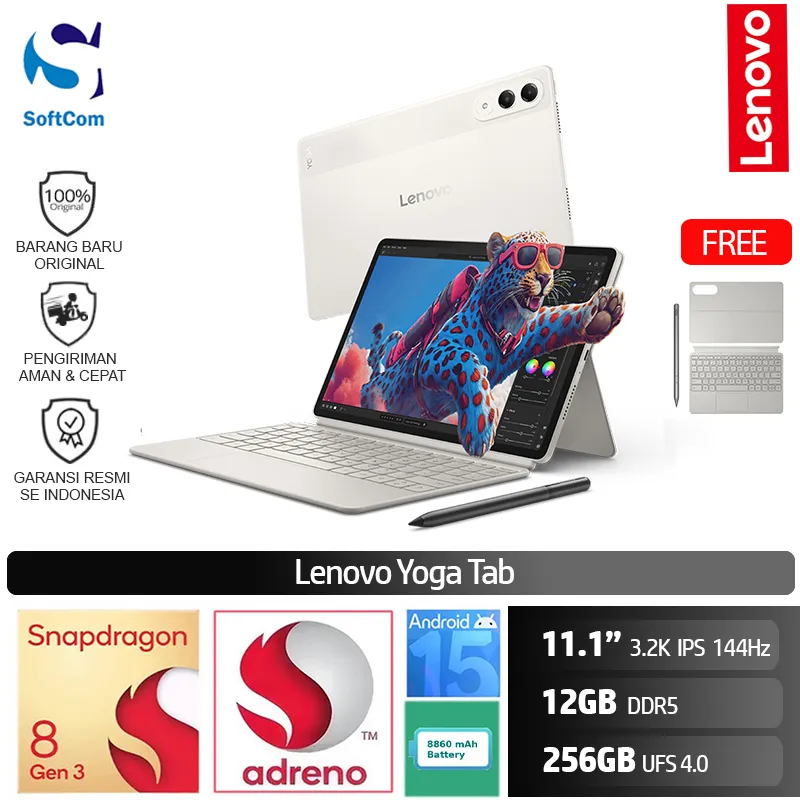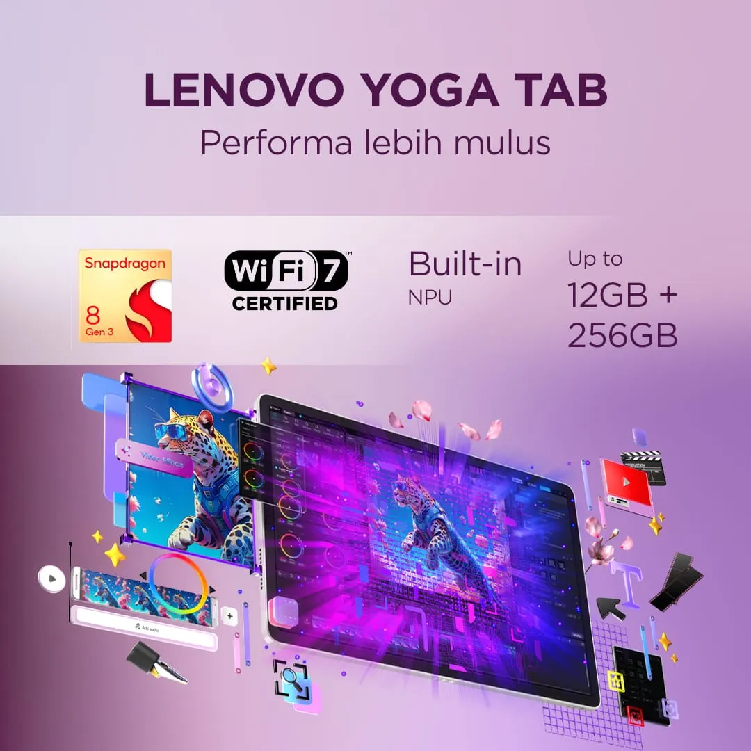 Lenovo Yoga Tab ZAG60275ID/Snapdragon 8 Gen 3/12GB/256GB UFS 4.0/11.1″ 3.2K Touch 144Hz/Android 15/Seashell