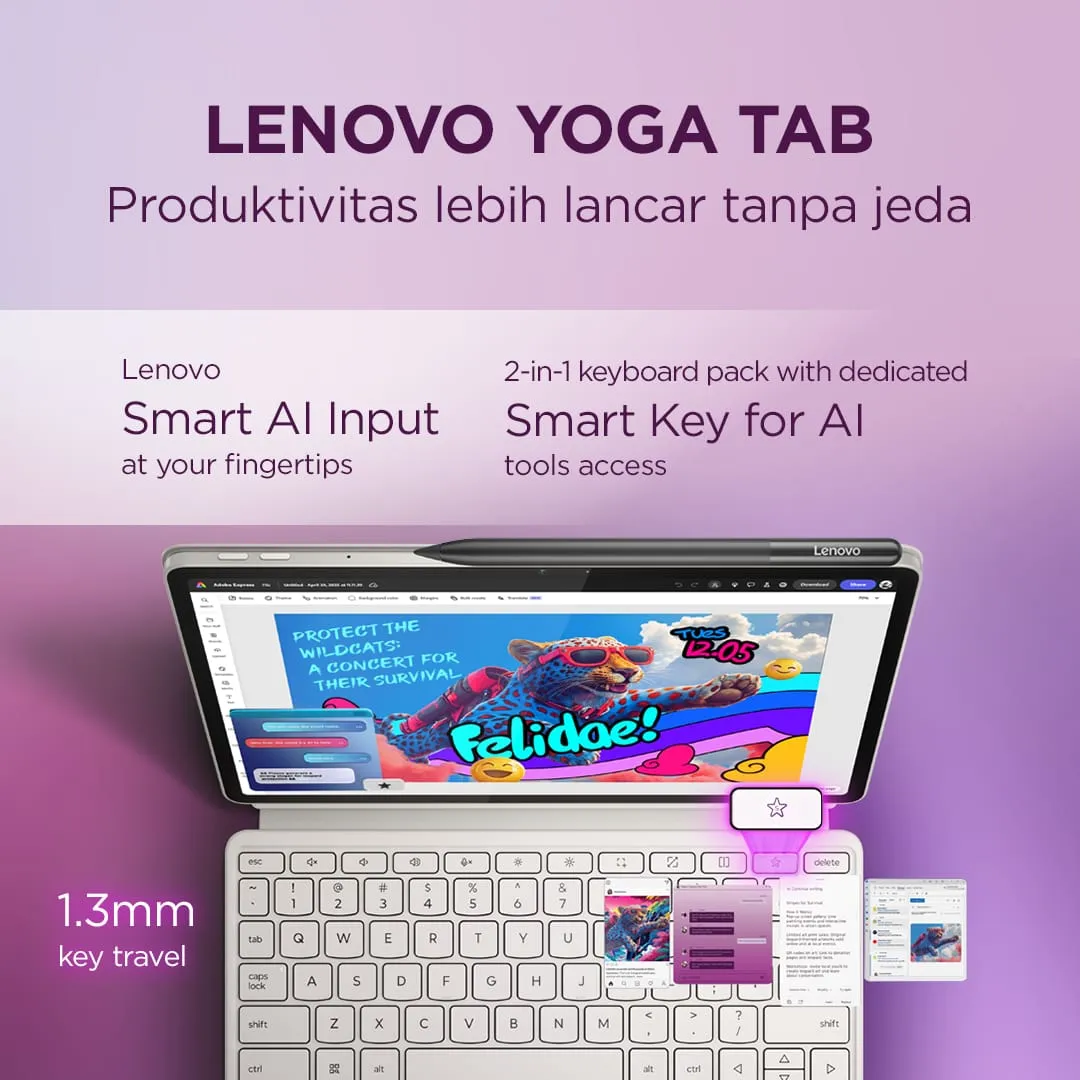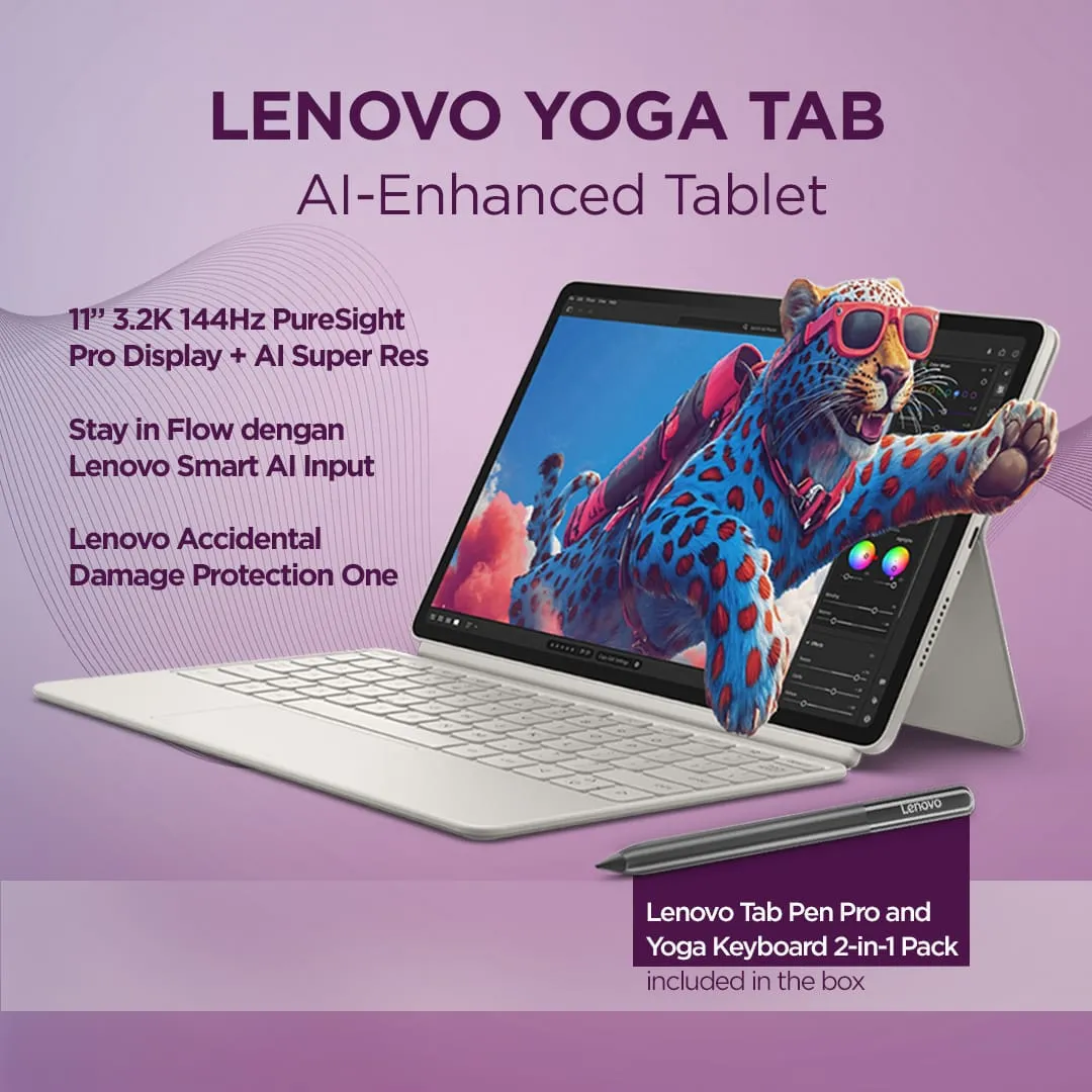 - Free : Lenovo® Tab Pen Pro + Lenovo® Keyboard Pack for Yoga® Tab