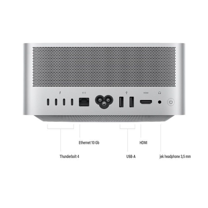 - Port Belakang : 4x Thunderbolt 4; 1x Ethernet 10 Gb; 2x Port USB-A; 1x Port HDMI; 1x Jek headphone 3,5 mm