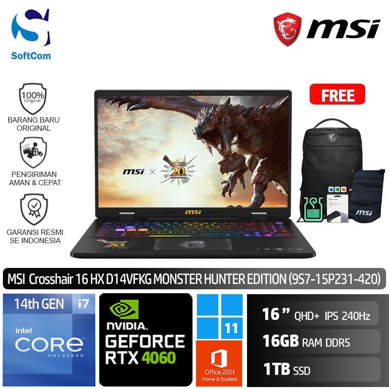 MSI Crosshair 16 HX D14VFKG MONSTER HUNTER EDITION (9S7-15P231-420) /Core i7-14700HX/16GB/1TB SSD/GeForce RTX 4060 8GB/16″ QHD+ 240Hz/Win 11 Home+OHS 2021/Core Black