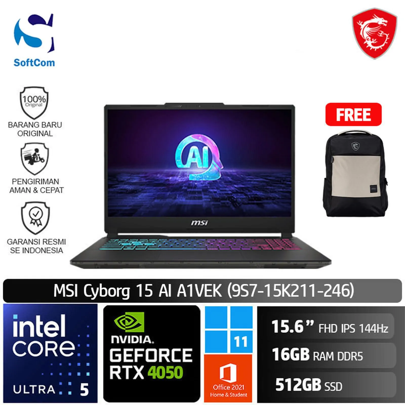 MSI Cyborg 15 AI A1VEK ( 9S7-15K211-246) /Ultra 5 135H/16GB/512GB SSD/GeForce RTX 4050 6GB/15.6″ FHD 144Hz/Win 11 Home+OHM 2024/Black