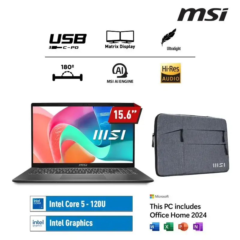 MSI Modern 15 F1MG (9S7-15S111-475) /Intel Core 5-120U/16GB/512GB SSD/15.6″ FHD IPS/Win 11 Home+OHM 2024/Platinum Grey