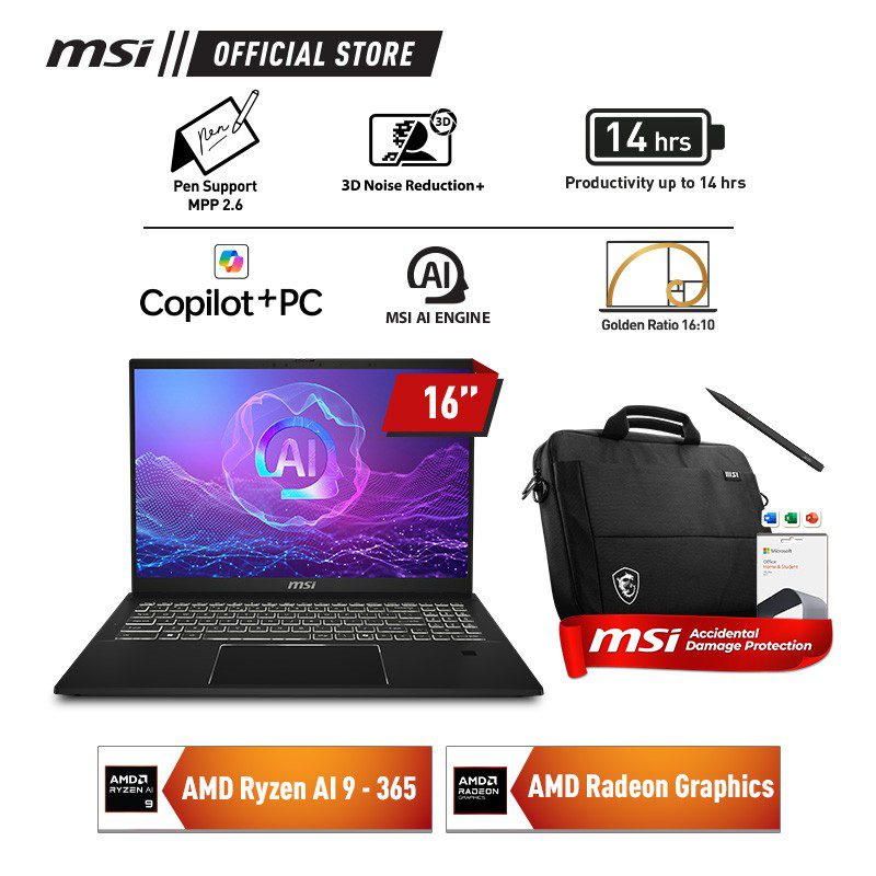 MSI Summit A16 AI + A3HMTG 041 (9S7-159K21-041) /Ryzen AI 9 365/32GB/1TB SSD/16″ QHD + Touch/Win 11 Home+OHS 2021/Ink Black