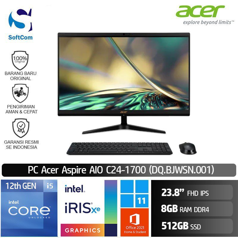 PC Acer Aspire AIO C24-1700 /Core i5-1235U/8GB/512GB SSD/23.8″ FHD IPS/Win 11 Home+OHS 2021/Black
