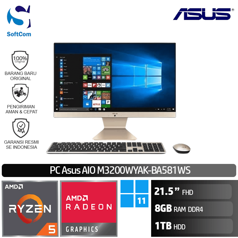 PC Asus AIO M3200WYAK-BA581WS/AMD Ryzen 5-5625U/8GB/1TB HDD/21,5″/Win 11 Home/Black