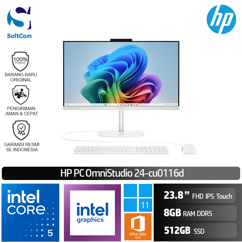 PC HP OmniStudio 24-cu0116d/Intel Core 5-120U/8GB/512GB SSD/23.8″ FHD IPS Touch/Win 11 Home+OHM 2024+M365/White